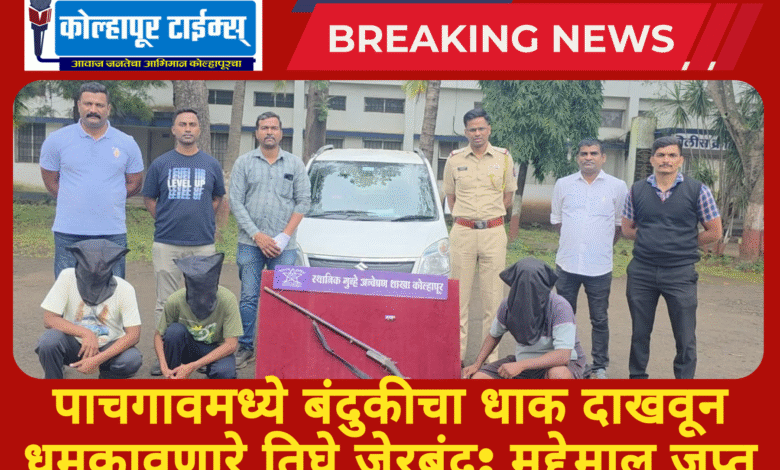 पाचगावमध्ये बंदुकीचा धाक दाखवून धमकावणारे तिघे जेरबंद; ६ लाखांहून अधिक किमतीचा मुद्देमाल जप्त!