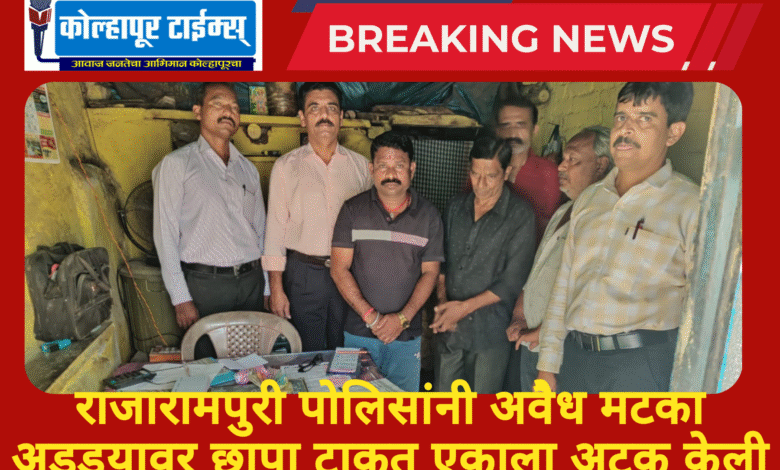 राजारामपुरी (सलीम शेख) : पोलीस अधीक्षक योगेश कुमार गुप्ता यांनी कोल्हापूर जिल्ह्यातील सर्व अवैध धंदे समूळ नष्ट करण्याचे आदेश दिल्यानंतर, अपर पोलीस अधीक्षक डॉ. बी. धीरज कुमार यांच्या नेतृत्वाखालील पथकाने राजारामपुरी पोलीस ठाण्याच्या हद्दीतील उद्यमनगर, चांदनी चौक येथे अवैध मटका अड्ड्यावर छापा टाकला.