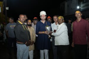 कागल (सलीम शेख ) : येथील अनंत रोटो परिसरात सरकार ग्रुपच्या वतीने एक भव्य गणेश महाआरती व संत बाळूमामा भंडारा उत्सव उत्साहात पार पडला. या दैवी सोहळ्यात गणेश महाआरती, संत बाळूमामा भंडारा, पालखी सोहळा आणि महाप्रसादाचे आयोजन करण्यात आले होते. हा कार्यक्रम संत बाळूमामा व हालसिद्धनाथ महाराज भाकणूककार डोणे महाराज वाघापूरकर यांच्या सानिध्यात पार पडला. या सोहळ्याला प्रमुख अतिथी म्हणून कागलचे अधिपती व शाहू उद्योग समूहाचे अध्यक्ष श्रीमंत राजे समरजितसिंहजी घाटगे उपस्थित होते.