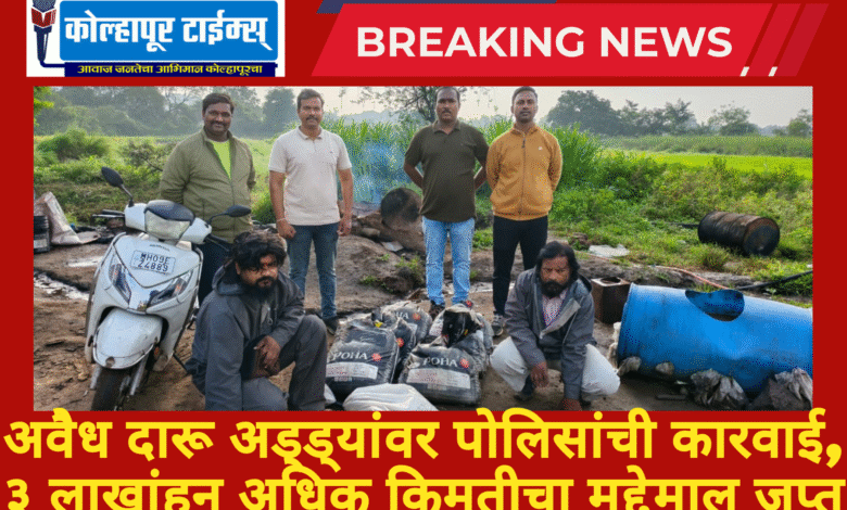 कोल्हापूर (सलीम शेख ): कोल्हापूर पोलिसांनी अवैध व्यवसायांवर केलेल्या कारवाईमध्ये, जिल्ह्यात हातभट्टीची दारू तयार करणारे ७ अड्डे उद्ध्वस्त करण्यात आले आहेत. या कारवाईत पोलिसांनी एकूण ३,२१,८०० रुपये किमतीचा मुद्देमाल जप्त केला आहे.