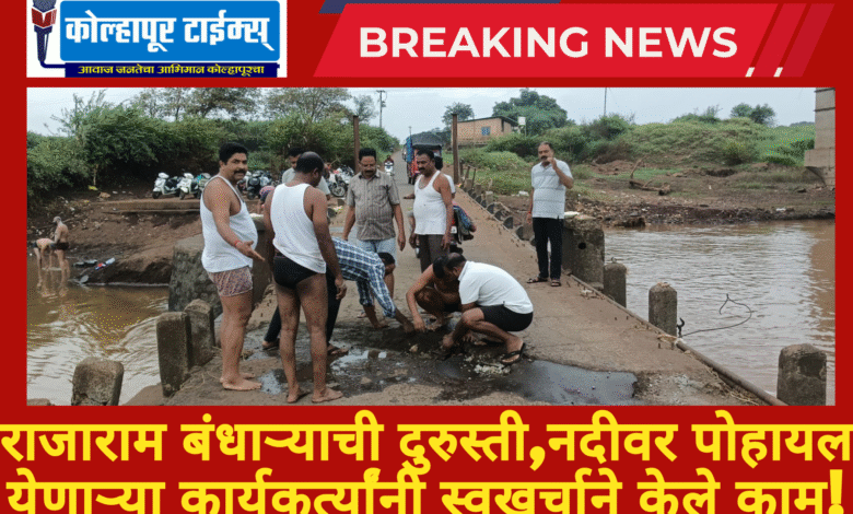 राजाराम बंधाऱ्याची दुरुस्ती,नदीवर पोहायला येणाऱ्या कार्यकर्त्यांनी स्वखर्चाने केले काम!