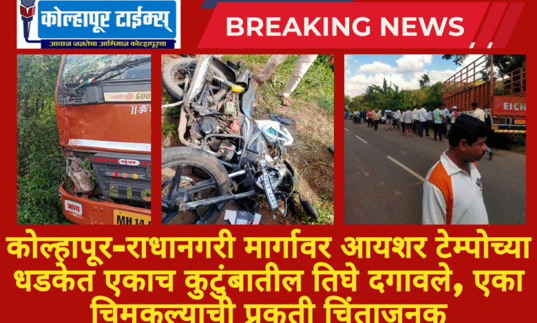 कोल्हापूर-राधानगरी मार्गावर भीषण अपघात! आयशर टेम्पोच्या धडकेत एकाच कुटुंबातील तिघे दगावले, एका चिमुकल्याची प्रकृती चिंताजनक