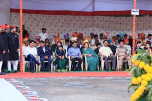 याव्यतिरिक्त, कुलगुरू डॉ. डी. टी. शिर्के, जिल्हाधिकारी अमोल येडगे, पोलिस अधीक्षक योगेशकुमार गुप्ता, महापालिकेच्या आयुक्त तथा प्रशासक के. मंजुलक्ष्मी, जि.प. सीईओ कार्तिकेयन एस. यांच्यासह प्रमुख शासकीय अधिकारी आणि कोल्हापुरातील विविध क्षेत्रातील मान्यवर नागरिक मोठ्या संख्येने उपस्थित होते. पारंपरिक आणि शाही थाटात संपन्न झालेल्या या सोहळ्यामुळे कोल्हापूरच्या ऐतिहासिक वारशाचे दर्शन घडले.
