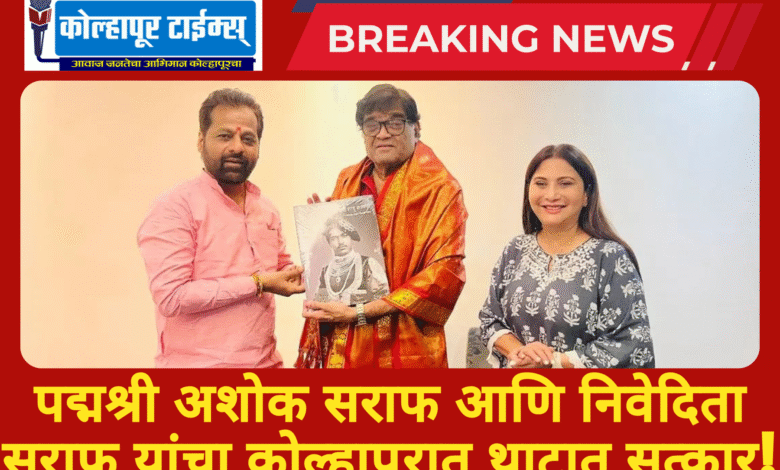 कोल्हापूर (सलीम शेख): मराठी आणि हिंदी चित्रपटसृष्टीतील ‘पद्मश्री’ पुरस्काराने सन्मानित ज्येष्ठ अभिनेते अशोक (मामा) सराफ आणि त्यांच्या पत्नी अभिनेत्री निवेदिता सराफ यांचा कोल्हापूर शहरात विशेष सत्कार करण्यात आला. महेश बाळासाहेब जाधव यांच्या जनसंपर्क कार्यालयातर्फे हॉटेल सयाजी येथे हा सत्कार समारंभ आयोजित करण्यात आला होता. यावेळी, भारतीय जनता पक्षाचे प्रदेश सचिव महेश जाधव यांच्या हस्ते अशोक सराफ आणि निवेदिता सराफ यांना शाल आणि कोल्हापूर नगरीचे ऐतिहासिक शाहू महाराजांचे सचित्र पुस्तक भेट देऊन ‘पद्मश्री’ पुरस्कार मिळाल्याबद्दल त्यांचे मनःपूर्वक अभिनंदन करण्यात आले.