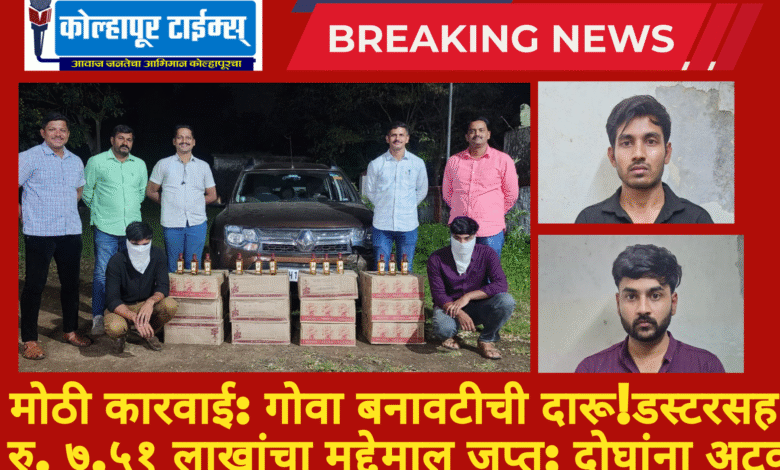 मोठी कारवाई: गोवा बनावटीची दारू आणि रेनॉल्ट डस्टरसह रु. ७.५१ लाखांचा मुद्देमाल जप्त; सांगलीच्या दोघांना अटक