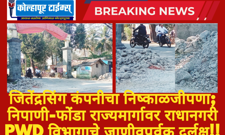 जितेंद्रसिंग कंपनीचा निष्काळजीपणा; निपाणी-फोंडा राज्यमार्गावर राधानगरी PWD विभागाचे जाणीवपूर्वक दुर्लक्ष!!
