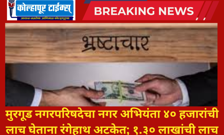 मुरगूड नगरपरिषदेचा नगर अभियंता ४० हजारांची लाच घेताना रंगेहाथ अटकेत; हुपरीतील कामासाठी मागितली होती १.३० लाखांची लाच