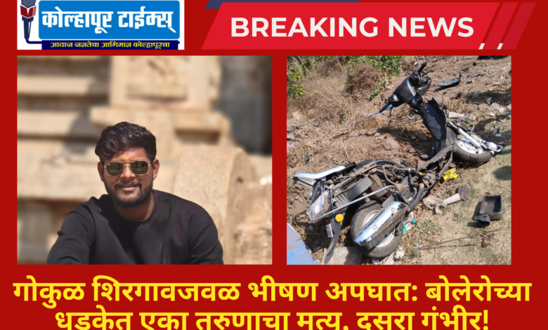 गोकुळ शिरगावजवळ भीषण अपघात: बोलेरोच्या धडकेत एका तरुणाचा मृत्यू, दुसरा गंभीर!