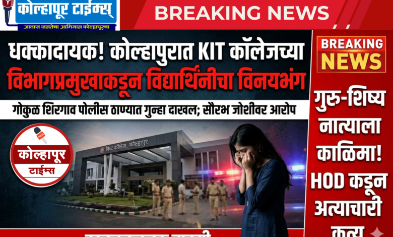 कोल्हापूर (इरफान मुल्ला ): विद्येचे माहेरघर मानल्या जाणाऱ्या कोल्हापूर शहरात एका संतापजनक घटनेने खळबळ उडाली आहे. गोकुळ शिरगाव येथील नामांकित ‘के.आय.टी.’ (KIT) कॉलेजमधील एका २० वर्षीय विद्यार्थिनीचा विनयभंग केल्याप्रकरणी संबंधित विभागाच्या विभागप्रमुखावर (HOD) गोकुळ शिरगाव पोलीस ठाण्यात गुन्हा दाखल करण्यात आला आहे.