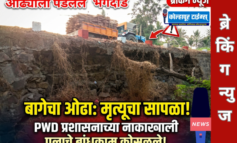 बागेचा ओढा (पूल), मुरगूड-चिमगांव मार्ग येथील संरक्षण कठड्यांचे दगडी बांधकाम खालून कोसळले आहे. तक्रार करून ६ महिने उलटले तरी प्रशासन सुस्त त्यामुळे तात्काळ दुरुस्ती न झाल्यास जनतेचा उद्रेक अटळ. सहा महिने उलटूनही जर अधिकारी हलत नसतील, तर हा थेट कर्तव्यात कसूर करण्याचा प्रकार आहे. जर या पुलावर कोणताही छोटा-मोठा अपघात झाला, तर त्याची सर्वस्वी जबाबदारी PWD च्या संबंधित इंजिनिअर्स आणि अधिकाऱ्यांवर राहील, असा इशारा देण्यात आला आहे. आता या बातमीने तरी कुंभकर्णी झोपेत असलेले अधिकारी जागे होतात की पुन्हा नवीन ‘तारीख’ देतात, याकडे संपूर्ण तालुक्याचे लक्ष लागले आहे.