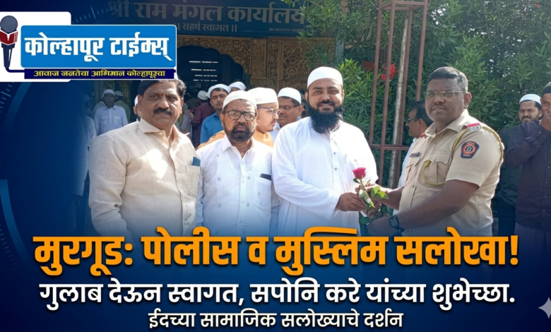 सपोनि करे यांनी स्वतः प्रत्येक मुस्लिम बांधवाला गुलाबाचे फूल देऊन ईदच्या शुभेच्छा दिल्या. पोलिसांच्या या संवेदनशील आणि आपुलकीच्या भूमिकेमुळे उपस्थितांमध्ये समाधानाचे वातावरण होते. मुस्लीम बांधवांनीही पोलीस प्रशासनाचे आभार मानत त्यांना ईदच्या शुभेच्छा दिल्या. “सण कोणताही असो, पोलीस नेहमीच आमच्या सुरक्षेसाठी सज्ज असतात, आज त्यांनी दिलेली ही गुलाबाची भेट आमच्यासाठी मोलाची आहे,” अशी भावना यावेळी नागरिकांनी व्यक्त केली. ​या प्रसंगी पोलीस कर्मचारी, शहरातील प्रतिष्ठित नागरिक आणि मोठ्या संख्येने युवक उपस्थित होते. या उपक्रमामुळे मुरगूड शहरात जातीय सलोखा अधिक दृढ झाल्याचे पाहायला मिळाले.